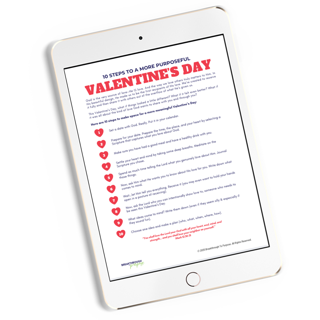Valentine’s Day can be full of expectations—but it doesn’t have to be. This free, step-by-step guide helps you pause, refocus, and intentionally experience God’s love first, so whatever you give to others flows from a place of fullness, not pressure. Create space for what truly matters this season.